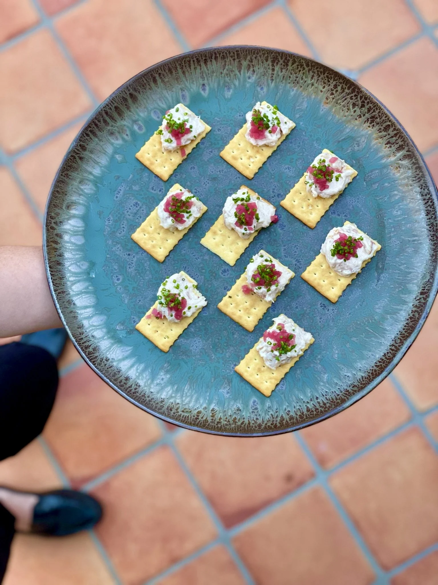 INGREDIENTS: Smoked pacific striped bass, mayonnaise, shallot, lemon, koji, salt